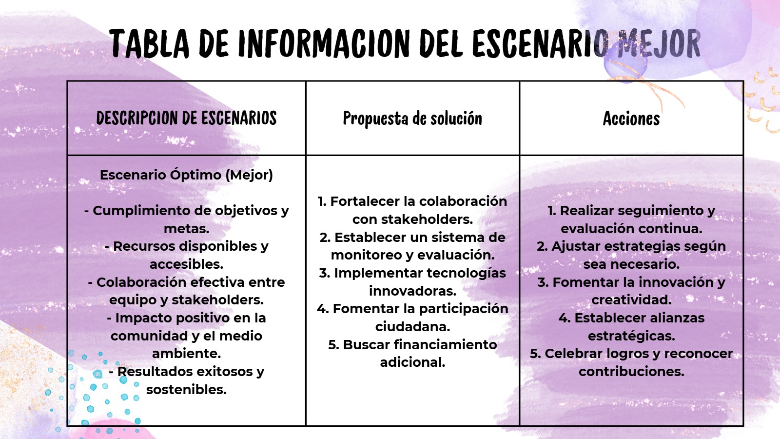 El escenario de mejor situación nos sirve para